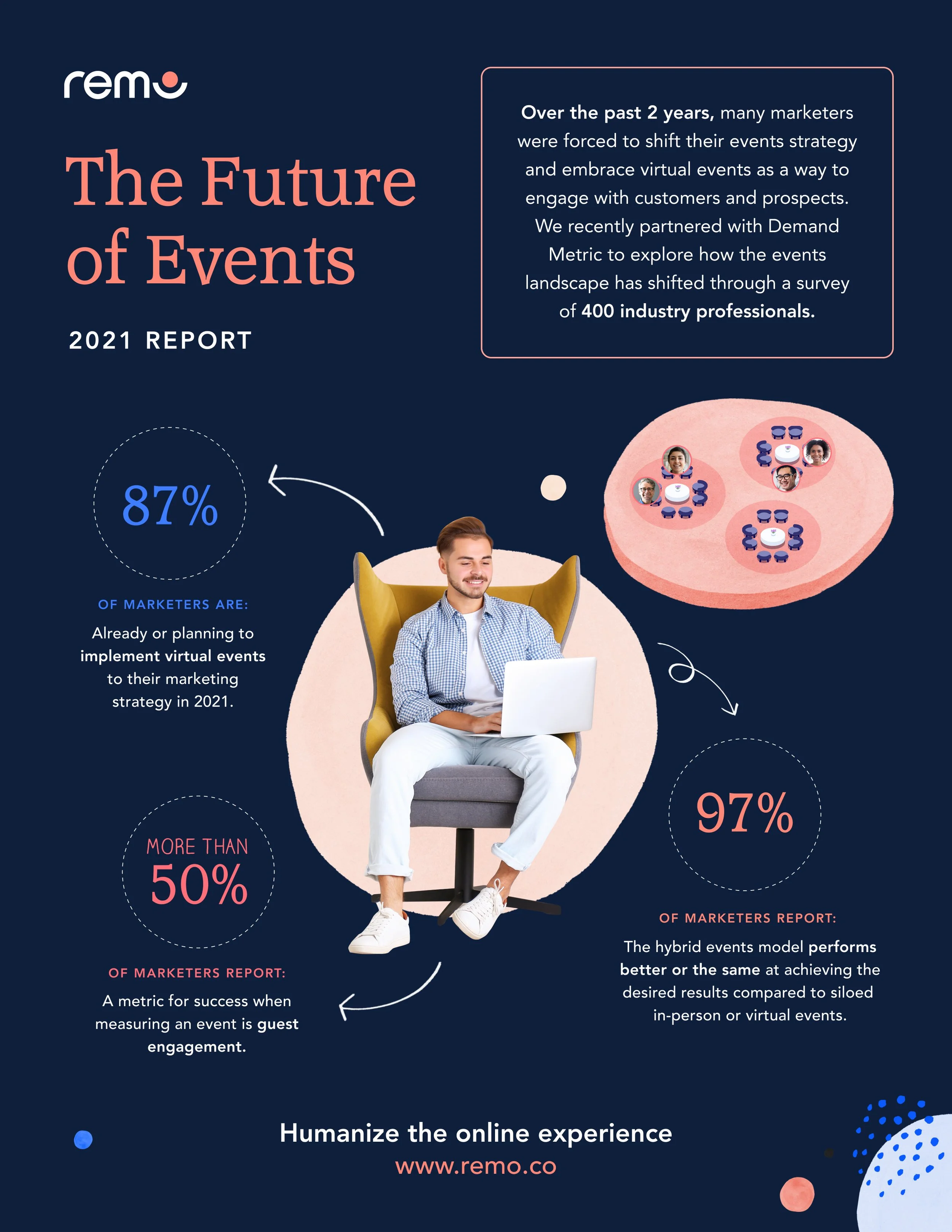 My main responsibility at Remo was creating social posts and promotions for virtual events with partners. After creating a template library I was able to speed up the design process and turn around tactics quickly, while ensuring brand consistency.